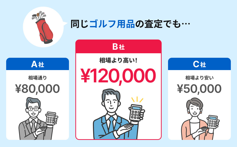 ゴルフ用品の買取額は業者ごとに大きく異なります。